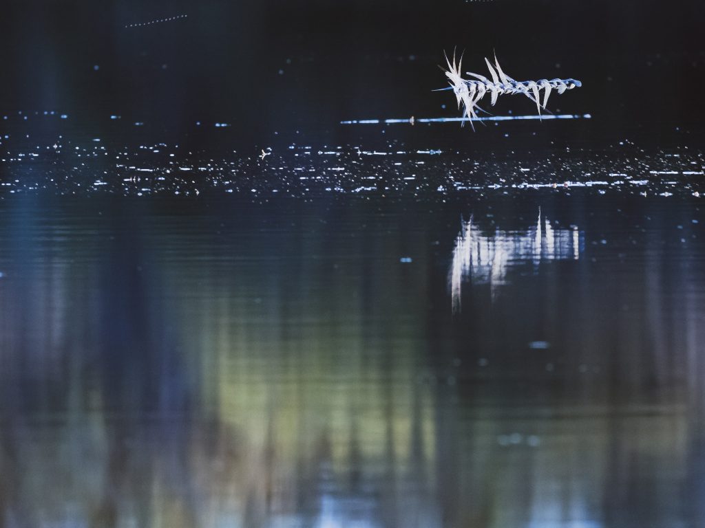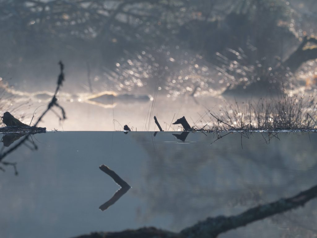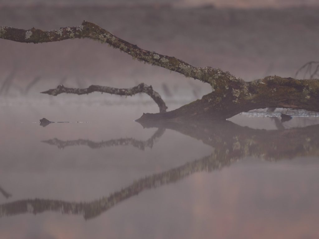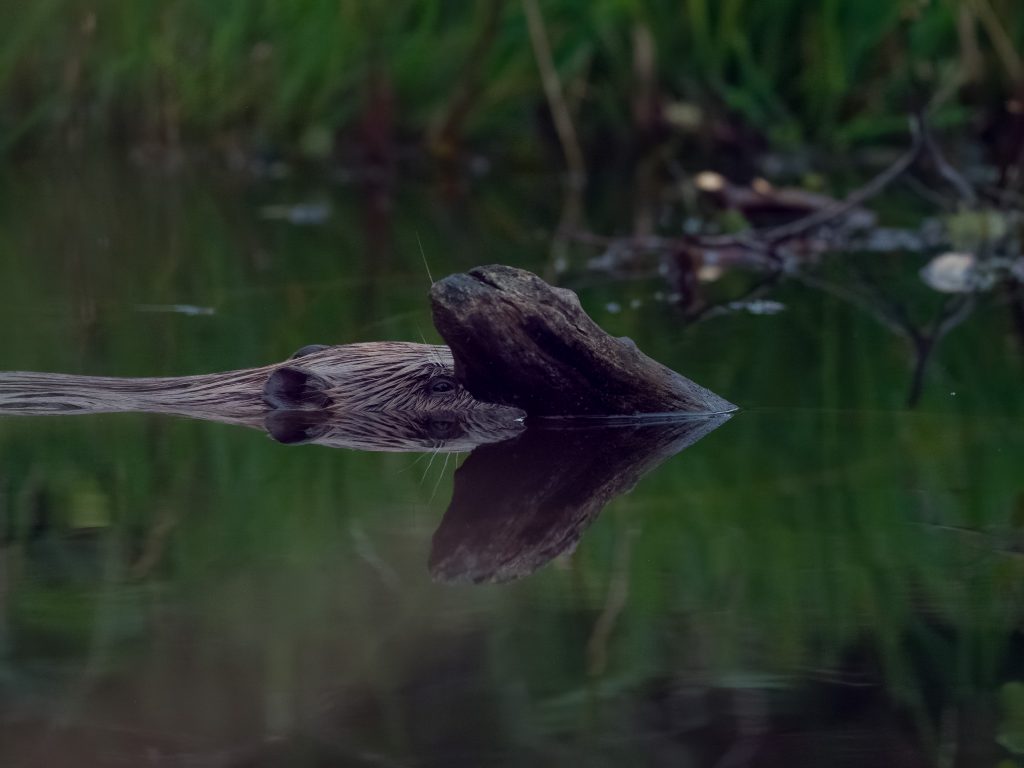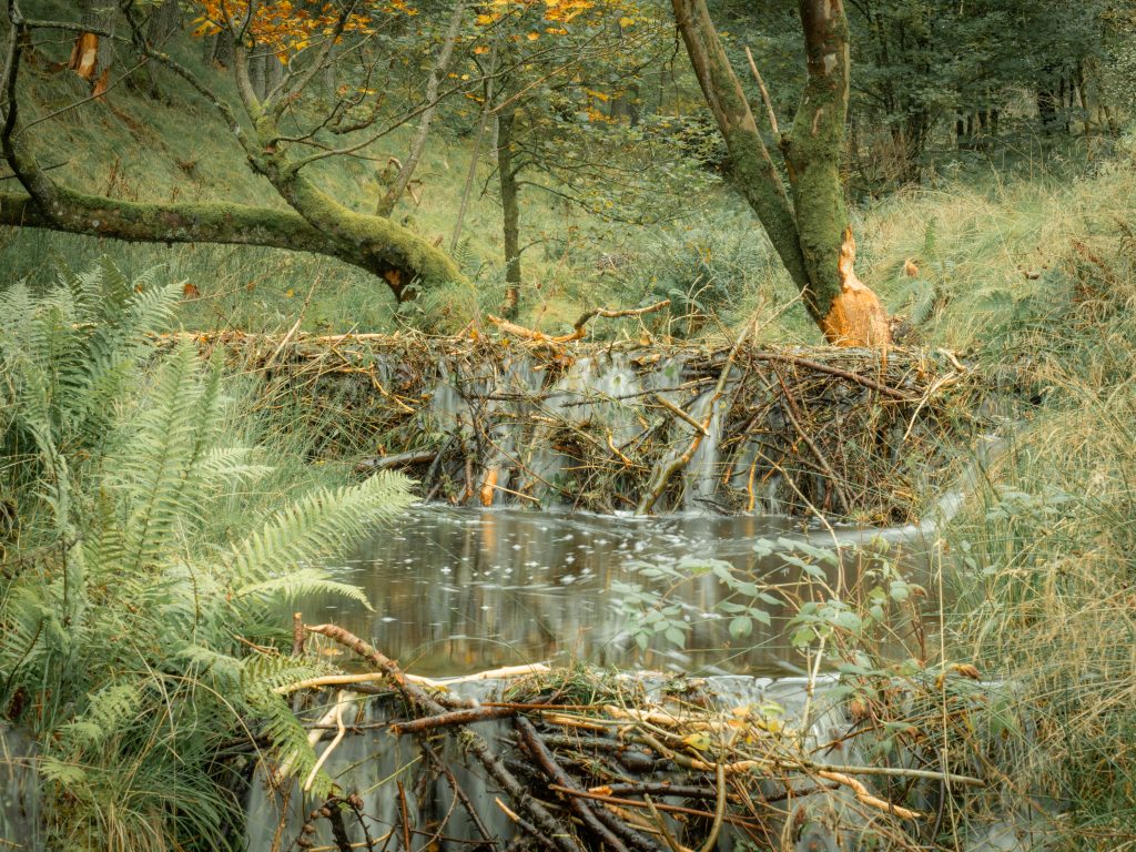 But ultimately it is the keystone species: the beaver which, since 2002, transforms the Bamff landscape into ever more intricate and sculptural dimensions. Their numerous dams helping to create ever wider and deeper ponds and swamps, re-meandering the waterways, raising the water table and giving rise to the conditions that supports a constantly expanding range of species.