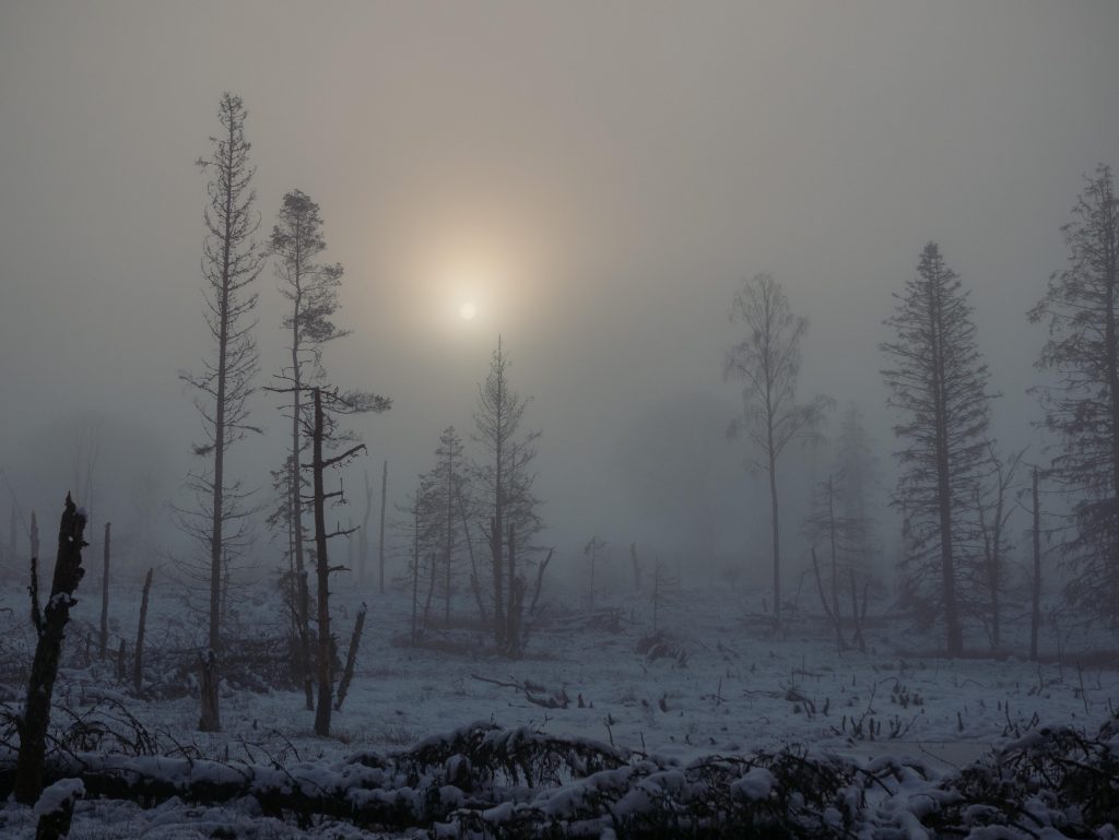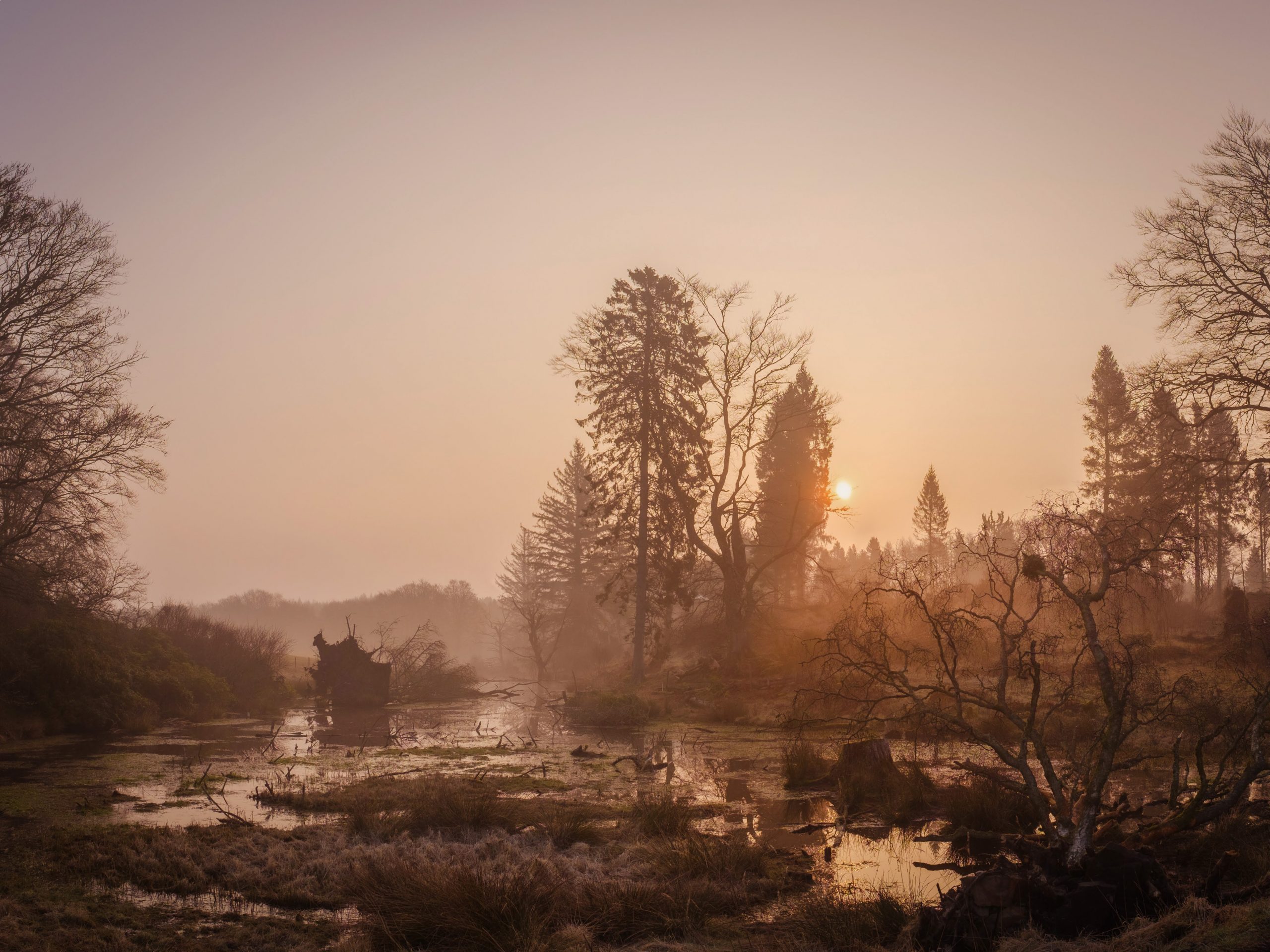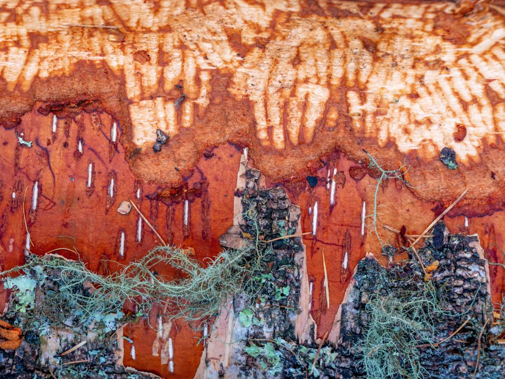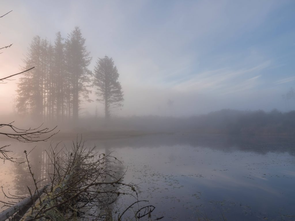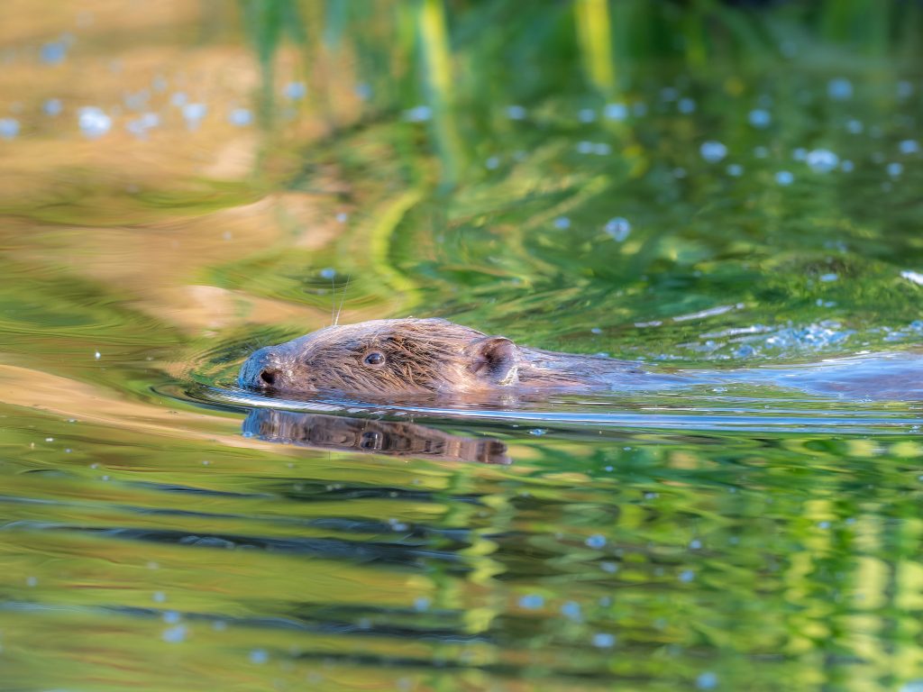 But ultimately it is the keystone species: the beaver which, since 2002, transforms the Bamff landscape into ever more intricate and sculptural dimensions. Their numerous dams helping to create ever wider and deeper ponds and swamps, re-meandering the waterways, raising the water table and giving rise to the conditions that supports a constantly expanding range of species.